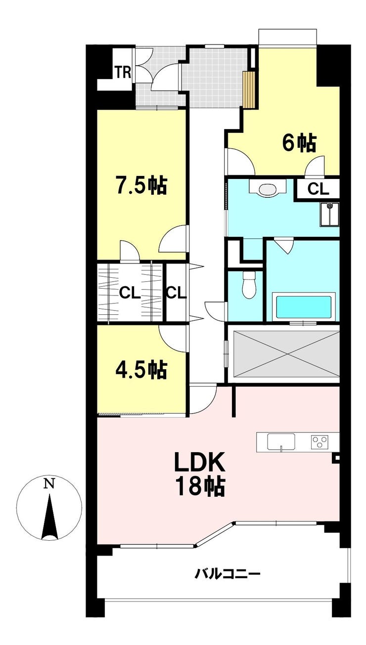 ひろびろLDKは18帖+*玄関前にトランクルーム付きなので、住居の収納力UP♪
